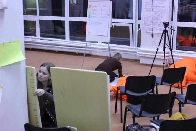 Мария построила свое выступление как подготовку к «ярмарке проектов» - первому ожидавшему участников заданию. К ярмарке проектов каждому из участников полагалось подготовить плакат, отображающий суть проекта, а затем презентовать его в формате «elevator speech» - речь в лифте. Если удается донести свою идею до другого человека за время подъема с первого этажа на 8-й – значит она действительно ясна самому автору. А ясность видения «картинки» - пункта назначения дарит понимание направления локальных действий. Презентация должна содержать в себе ответы на ключевые проектные вопросы. Мария особенно выделила пункт «Сроки и во имя чего.» Во имя чего?!..